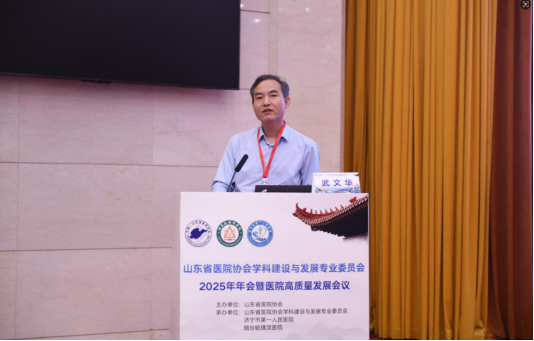 武文华介绍了近年来济宁卫生健康事业发展的成果,并肯定专委会在促进行业交流、提升医疗质量方面的作用,强调会议将助力医疗机构能力提升。赵升田则强调学科建设是医院高质量发展的核心,需与专科形成“双轮驱动”,并以山东省肿瘤医院学科集群和葛均波院士团队创新为例,说明原始创新与成果转化对提升医院竞争力的重要性。