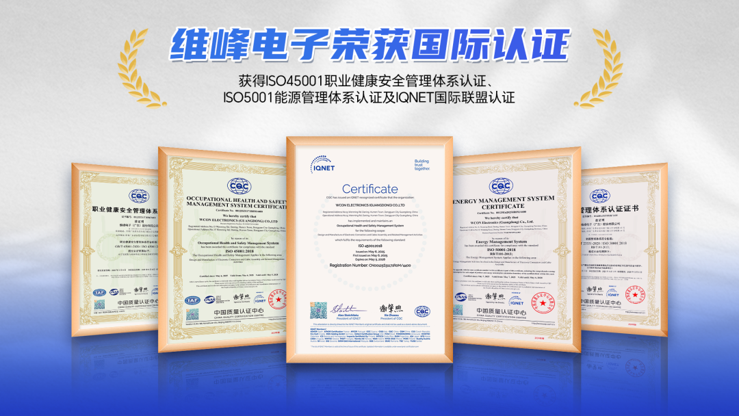 在全球化竞争中,管理体系的先进性是企业立足的根基。维峰电子同步通过ISO45001与ISO5001双体系认证,标志着其技术管理与运营能力已达到国际领先水平,更以科学管理为产品质量和客户价值提供双重保障。